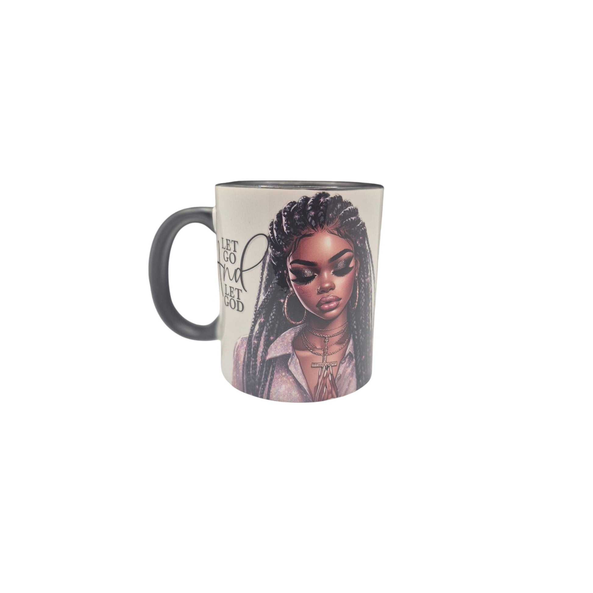 Black & White Ceramic Mug With Inspirational Message "Let Go And Let God"