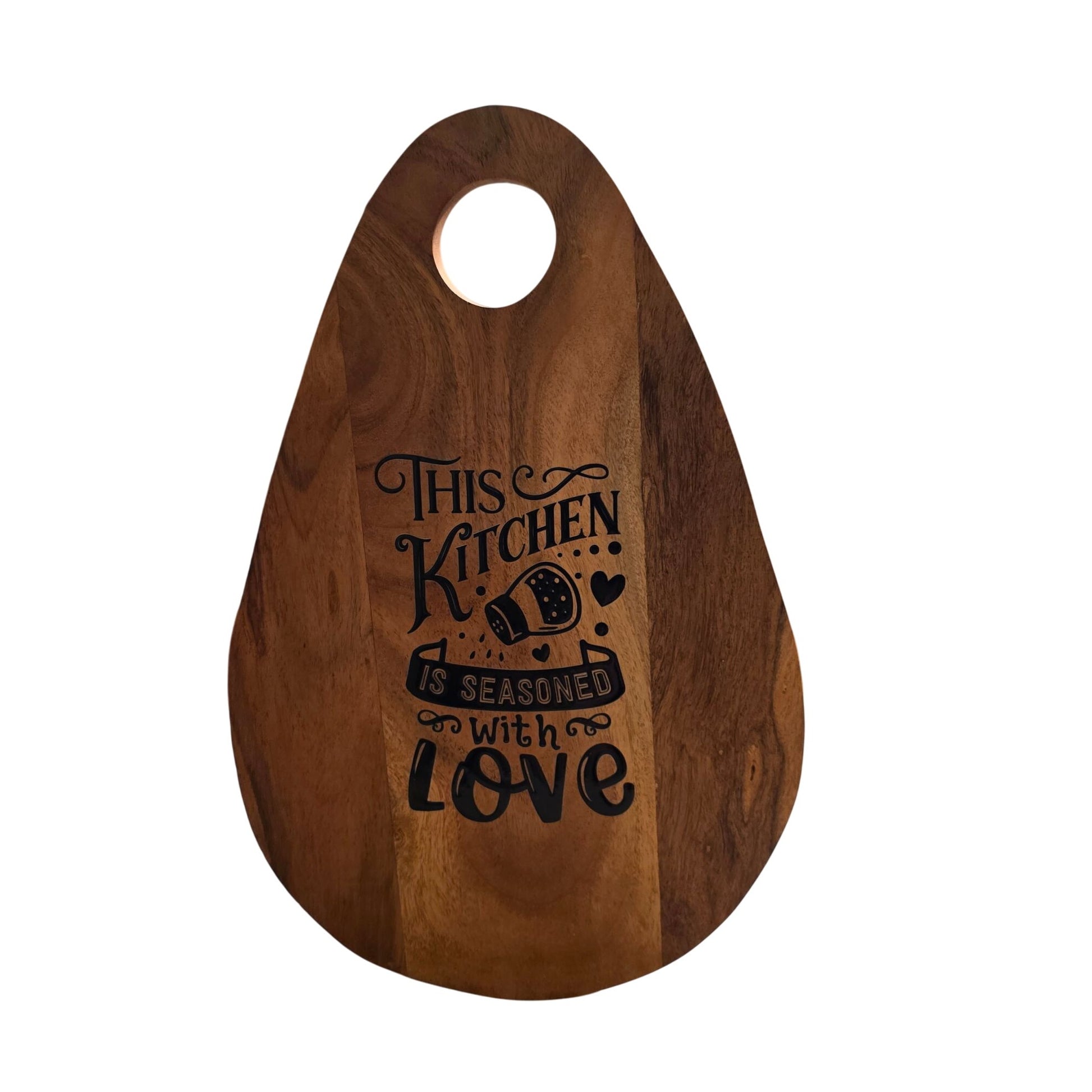 Handmade Acacia Wood Cutting Board With "This Kitchen Is Seasoned With Love" Engraving