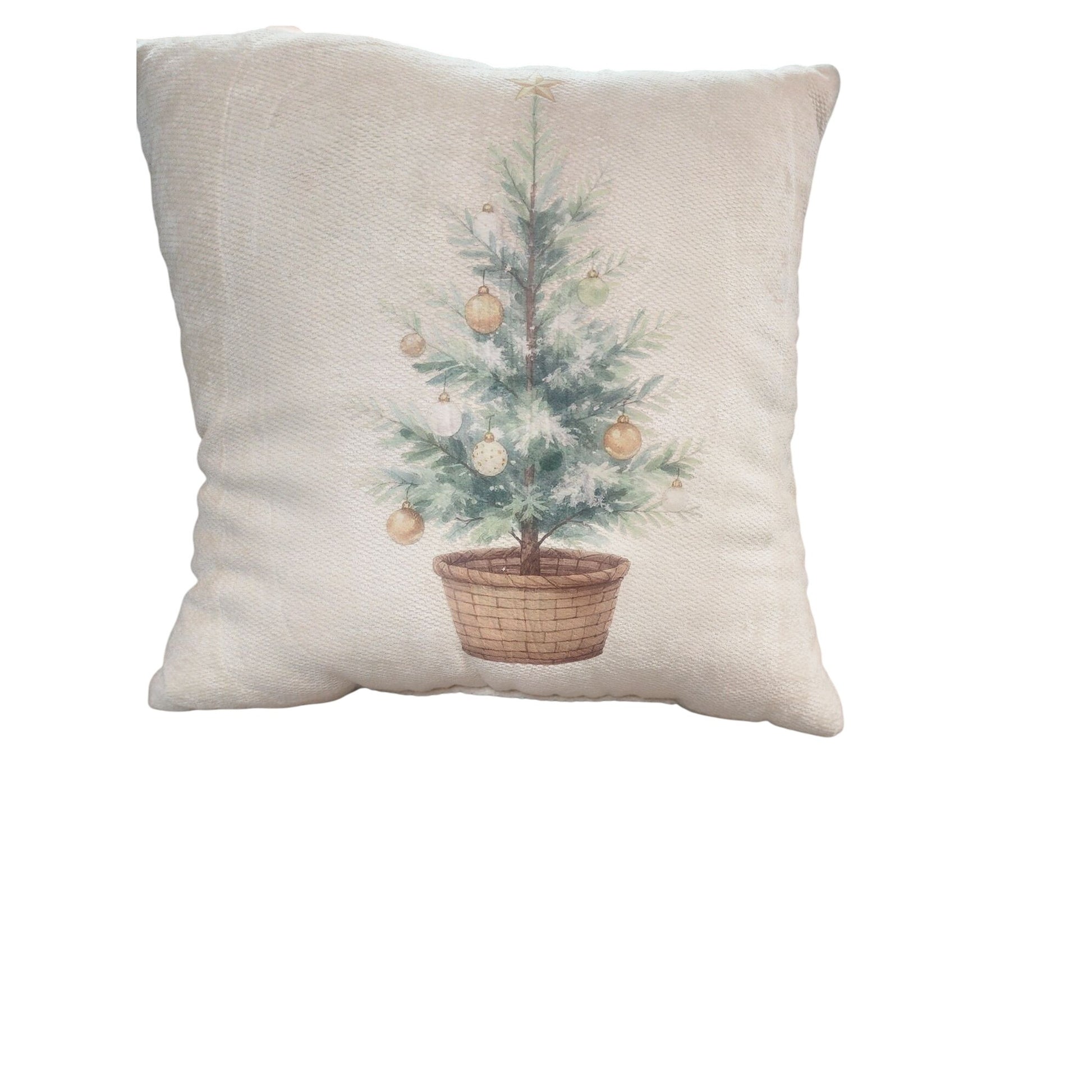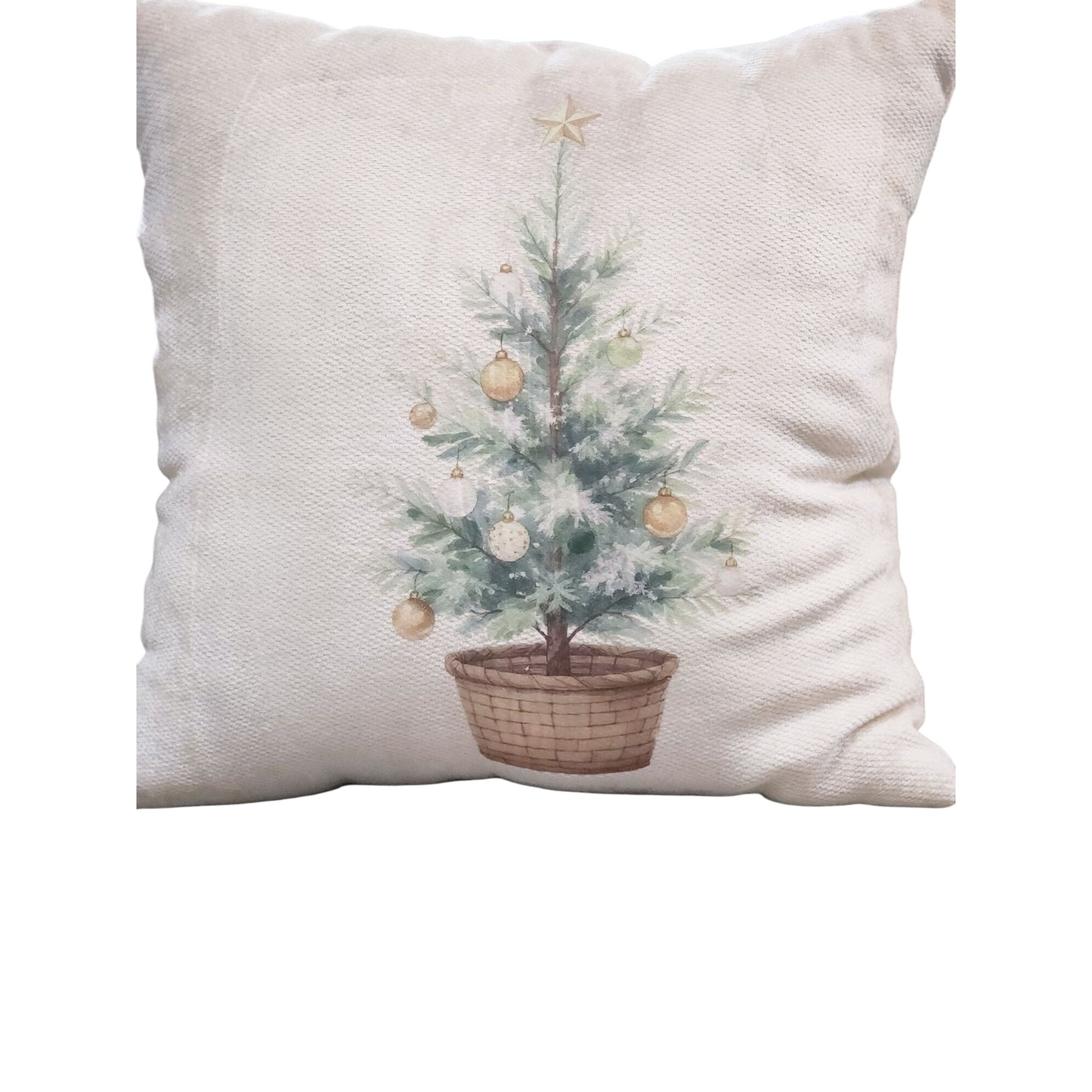 Enhance your holiday decor with this cozy Christmas pillow. Featuring a delicate watercolor tree on a soft cream background, it adds festive charm and warmth.