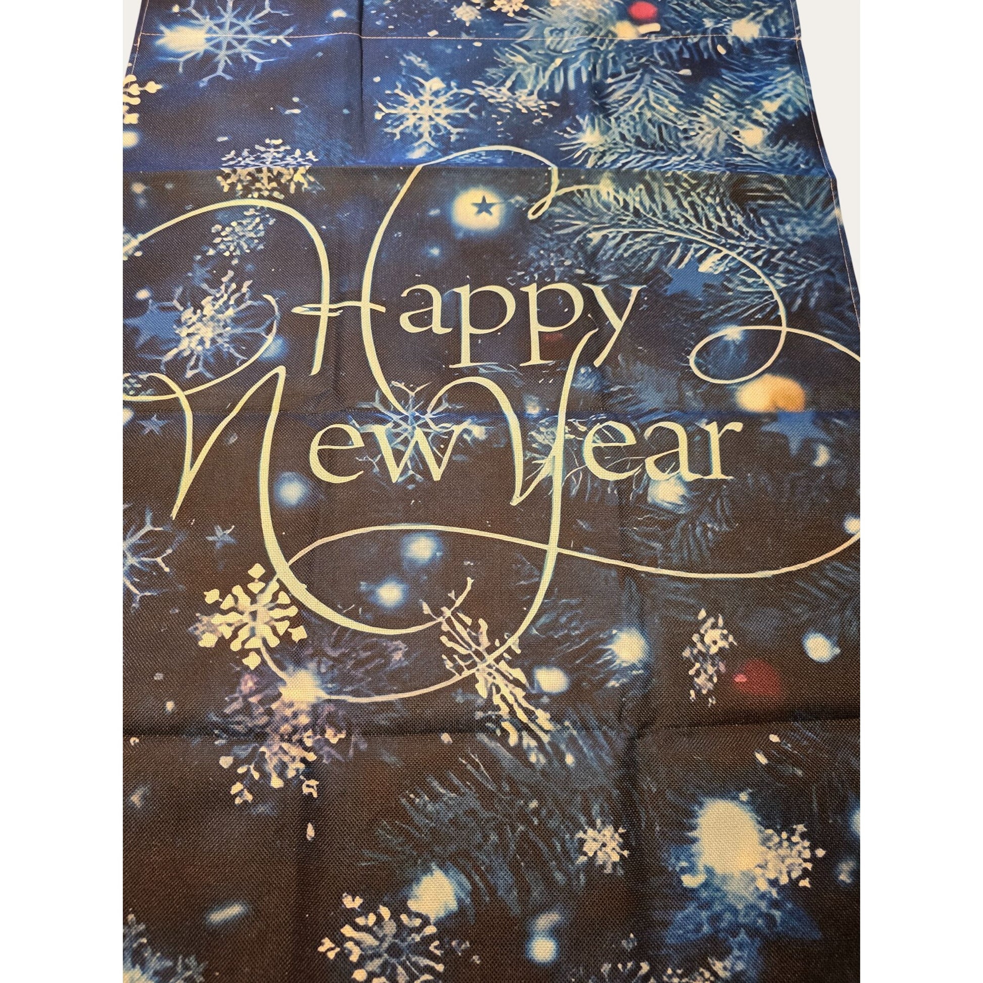 New Year Christmas Garden Flag Happy New Year Blue Snowflake Holiday Banner With Tree & Lights