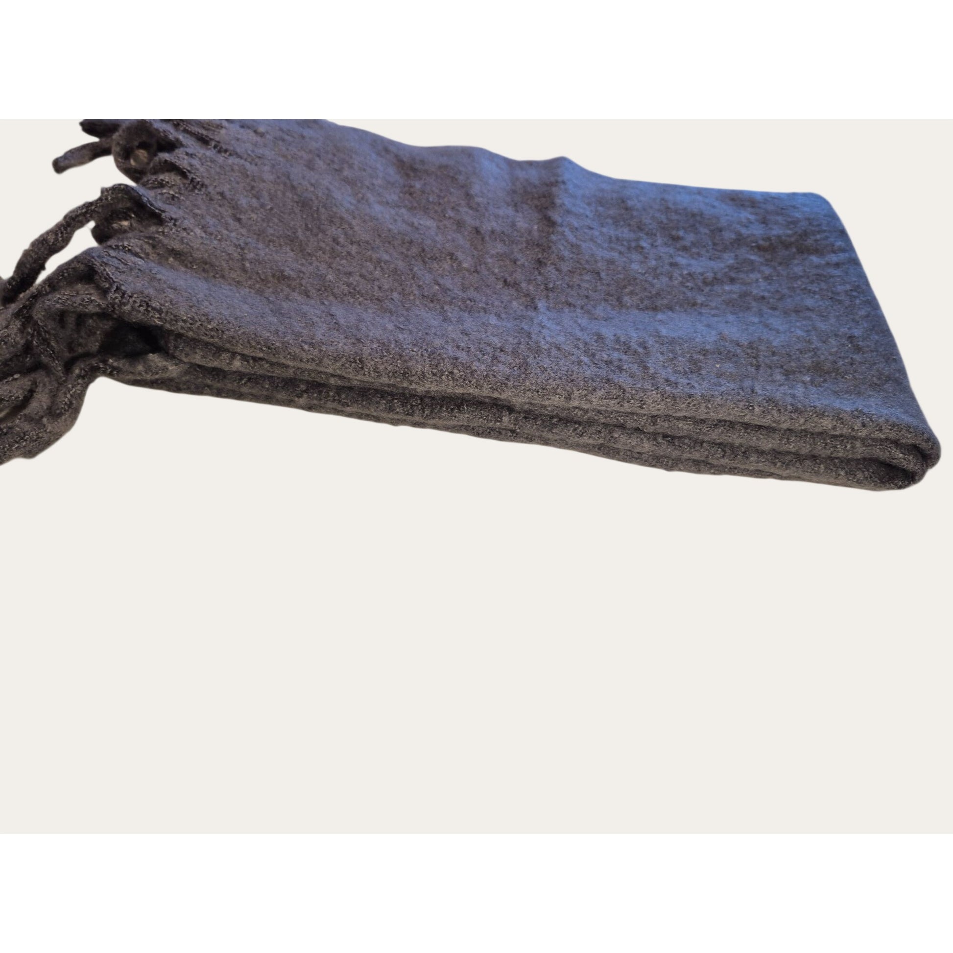This scarf offers a thick, substantial feel ideal for winter layering. Please review photos for texture, size, and fringe details. Colors may vary slightly due to lighting and screen settings.